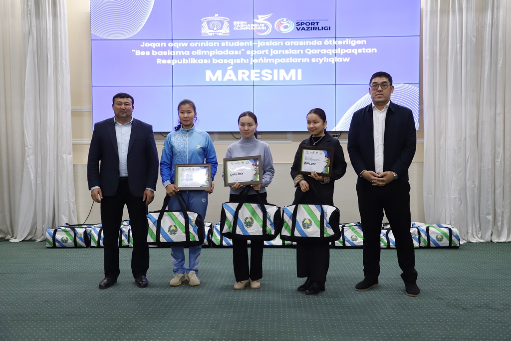 “Besh tashabbus olimpiadasi” sport musobaqalarining Qoraqalpog‘iston Respublikasi bosqichi g‘oliblari taqdirlandi