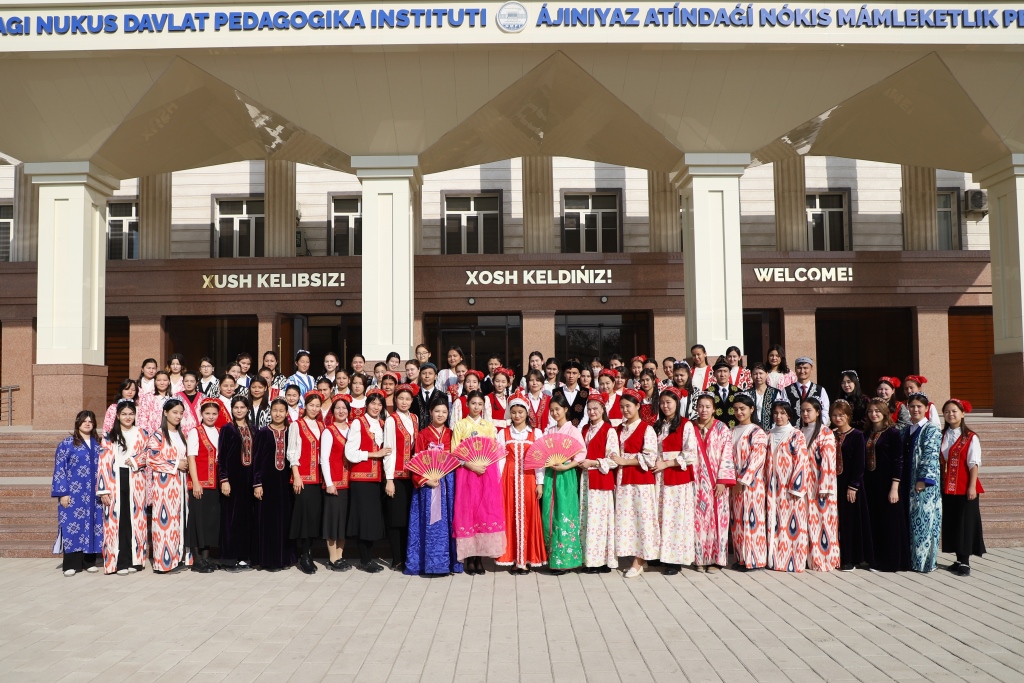 Ajiniyoz nomidagi Nukus davlat pedagogika instituti Filologiya fakulteti tomonidan tashkil etilgan “Milliy liboslar – milliy o‘zligimiz ko‘zgusi” mavzusidagi tadbirda talaba-yoshlar turli millat vakillarining milliy liboslarini kiyib, targ‘ibot ishlarini olib bordi.