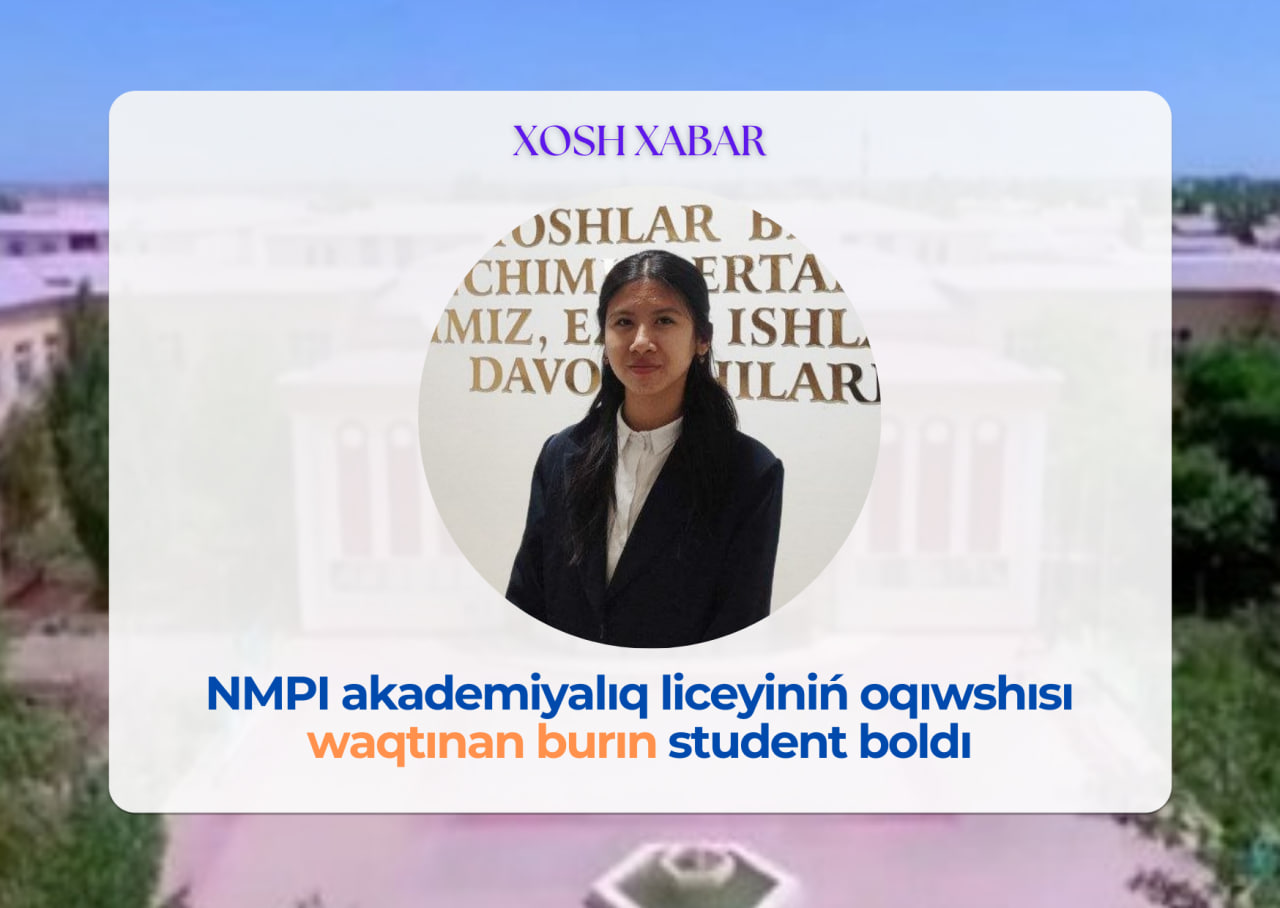 NukusDPI akademik litseyining o‘quvchisi muddatidan oldin talaba bo‘ldi