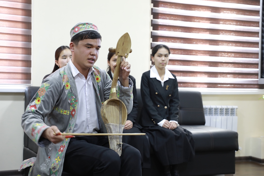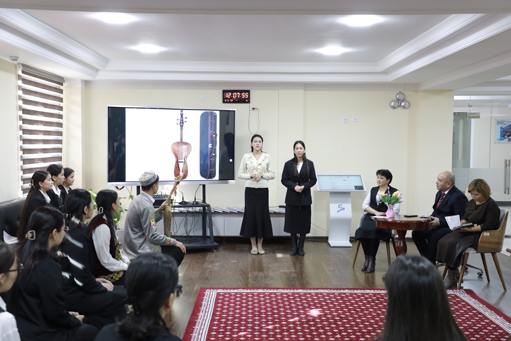 Tadbirda O‘zbekiston Respublikasida xizmat ko‘rsatgan yoshlar murabbiysi, institutning musiqa ta’limi kafedrasi dotsenti Ayapbergen Allanov, axborot-resurs markazi direktori Gulayim Jiyemuratova, tyutor Guljahan Artikovalar hurmatli Prezidentimizning Qoraqalpog‘iston Respublikasiga bo‘lgan tashrifida berilgan topshiriqlar doirasida qoraqalpoq xalqining asrlar davomida yetib kelgan bebaho madaniy merosini asrab-avaylash, uni yangi bosqichga olib chiqish va dunyo miqyosida keng targ‘ib qilishga qaratilayotgan alohida e’tibor haqida ma’lumotlar berdi.