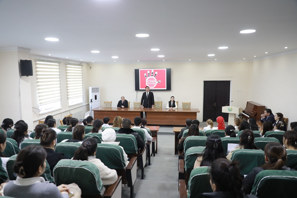 Mazkur tadbirda fakultet dekani Qarjaubay Reymov, institutning korrupsiyaga qarshi kurash bo‘limi bosh mutaxassisi Gulistan Dalibayeva, professor-o‘qituvchilar, tyutorlar hamda talaba-yoshlar ishtirok etib, ta’lim jarayonida korrupsiyaning oldini olish, shaffoflik va halollik tamoyillarini mustahkamlash masalalari muhokama qilindi.