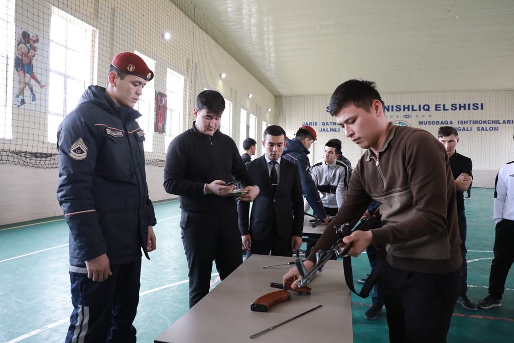 Yoshlarni vatanparvarlik ruhida tarbiyalash, ularning ma’naviy va jismoniy tayyorgarligini kuchaytirish, yoshlar o‘rtasida sog‘lom turmush tarzini targ‘ib qilish hamda Qurolli Kuchlar safida xizmat qilishga bo‘lgan qiziqishni oshirish maqsadida o‘tkazilgan musobaqada ishtirokchilar turnikda tortilish, “AKM” avtomatini qismlarga ajratish va yig‘ish, merganlik (kamondan otish), arqon tortish shartlari asosida o‘zlarining jismoniy tayyorgarligi va imkoniyatlarini sinovdan o‘tkazdi.