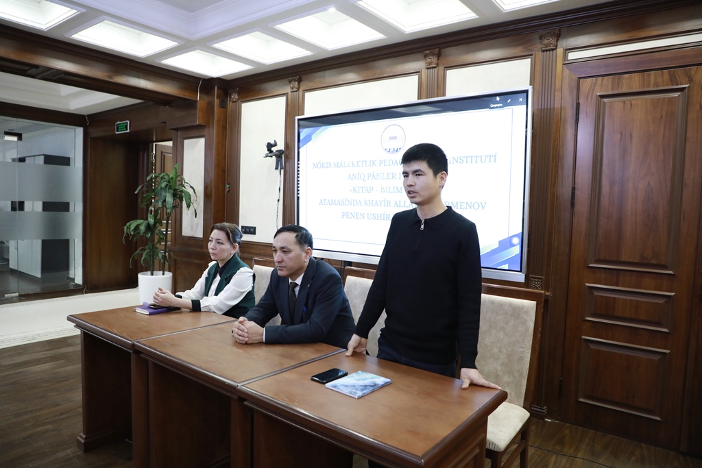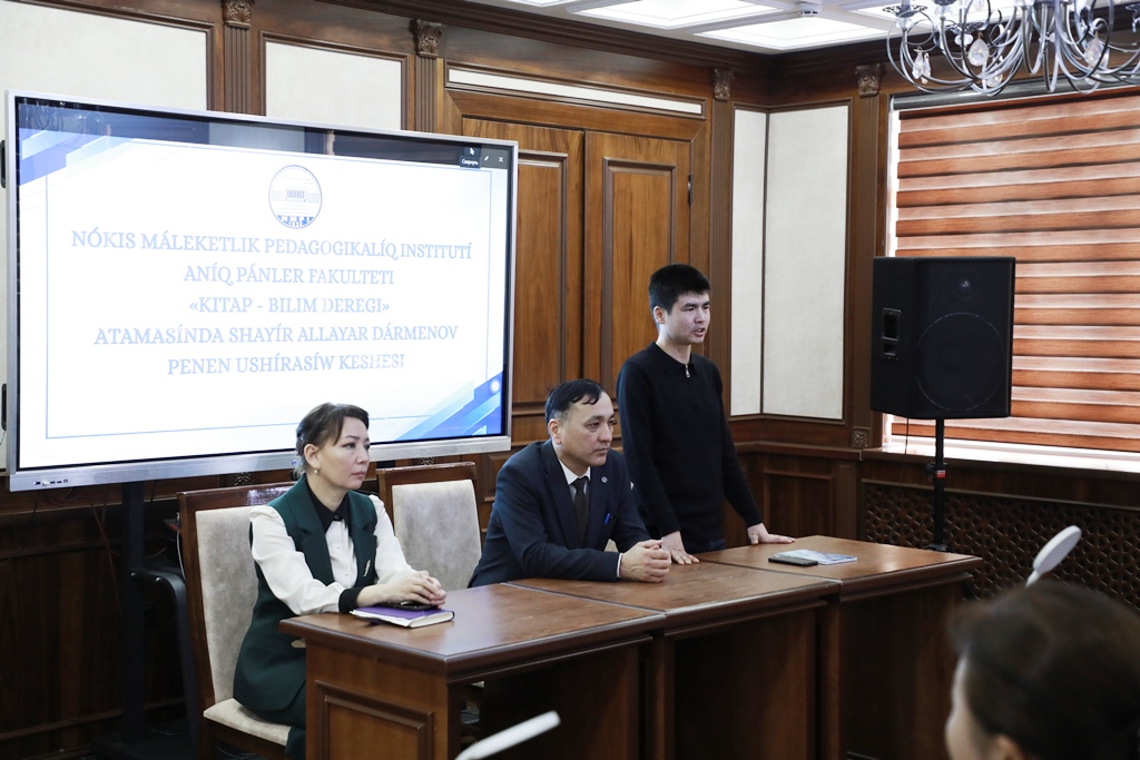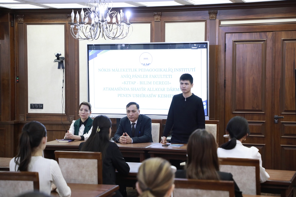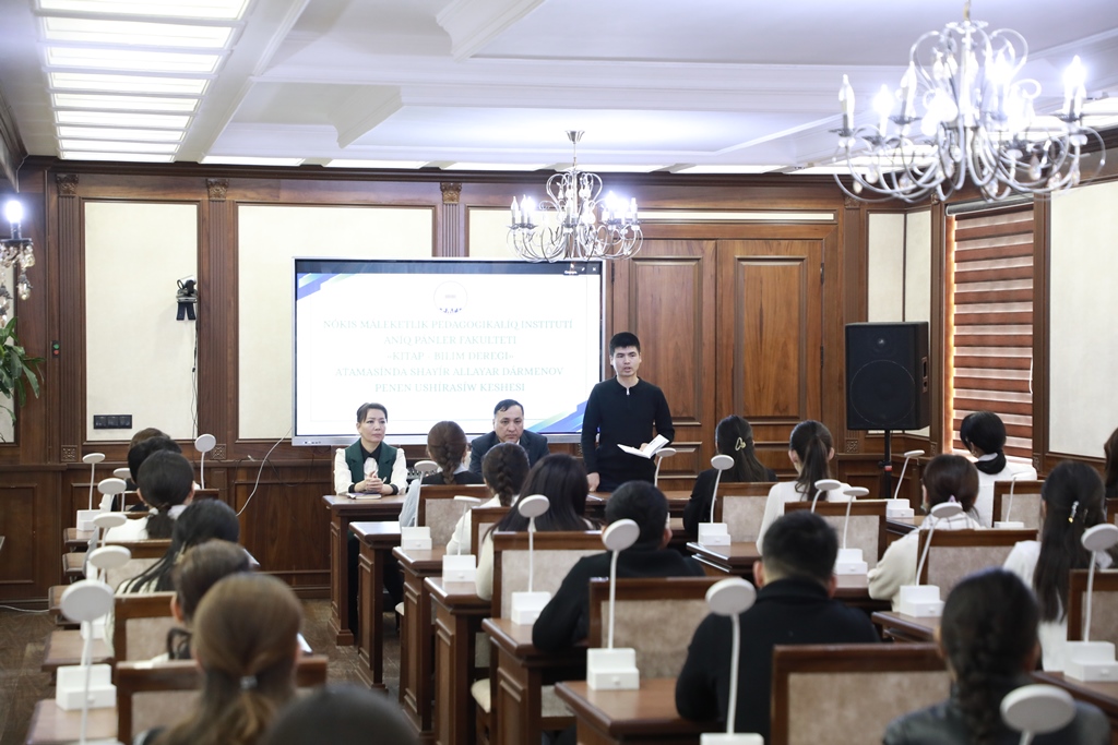 Ajiniyoz nomidagi Nukus davlat pedagogika instituti axborot-resurs markazida Aniq fanlar fakulteti tomonidan yoshlar o‘rtasida kitobxonlik madaniyatini yuksaltirish va keng targ‘ib qilish, shuningdek, ta’lim olishga bo‘lgan qiziqishini oshirish maqsadida “Kitob – bilim manbai” mavzusida ma’naviy-ma’rifiy uchrashuv tashkil etildi.