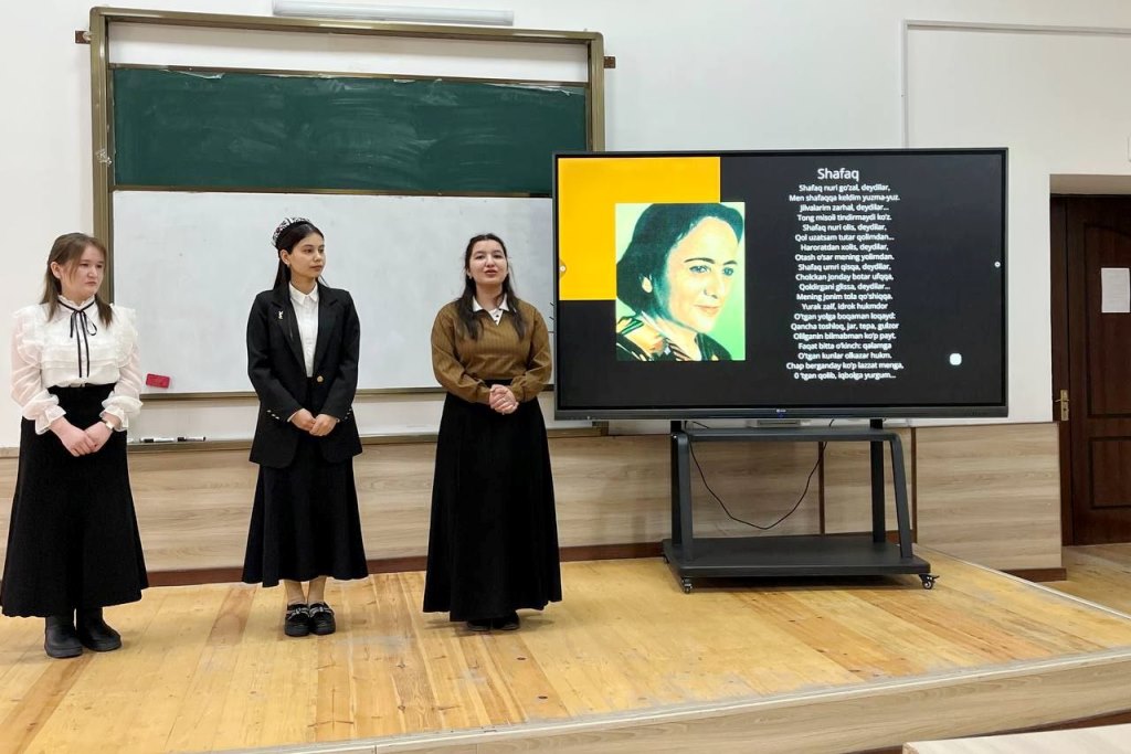 Ajiniyoz nomidagi Nukus davlat pedagogika instituti Aniq fanlar fakultetida o‘zbek adabiyotining yorqin namoyandasi, O‘zbekiston xalq shoiri Zulfiya Isroilova tavalludining 111 yilligi munosabati bilan adabiy kecha tashkil etildi.