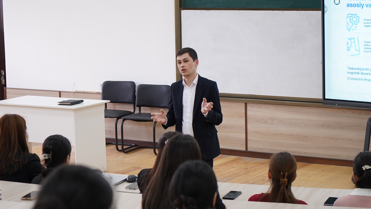 Institutning Xotin-qizlar maslahat kengashi huzuridagi “Qizlarjon” klubi hamda Nukus yoshlar texnoparki hamkorligida tashkil etilgan seminarda innovatsion va startap loyihalarga qiziquvchi talabalar ishtirok etdi.