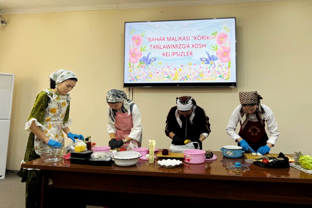 Kechki ta’lim yo‘nalishlari bo‘yicha xotin-qizlar maslahatchisi X.Xudaybergenova tashabbusi bilan o‘tkazilgan tanlovda 2-kurs talabalari orasidan namunali, ziyrak va qobiliyatli qizlar qatnashib, belgilangan shartlar bo‘yicha ijodiy qobiliyati, pazandalik mahorati, milliy qadriyatlarga hurmati va ma’naviy dunyoqarashini ko‘rsatishga harakat qildi.