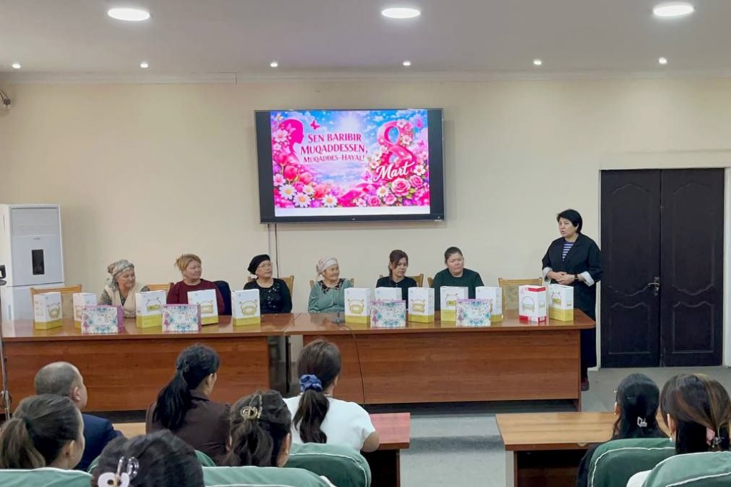 Tadbirda fakultet dekanining xotin-qizlar masalalari bo‘yicha maslahatchisi Suluxan Paluaniyazova ishtirokchilarni bayram bilan tabriklab, institut atrofi va o‘quv auditoriyalari, xizmat xonalarining tozaligini ta’minlashda tozalik bekalarining o‘rni alohida ekanligini ta’kidladi.