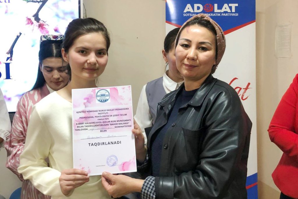 Ajiniyoz nomidagi Nukus davlat pedagogika instituti Pedagogika-psixologiya va ijodiy ta’lim fakultetida dekanning xotin-qizlar masalalari bo‘yicha maslahatchisi S.Aytmuratovaning tashabbusi bilan 8-mart – Xalqaro xotin-qizlar kuni bayramiga bag‘ishlangan “Bahor malikasi” tanlovi bo‘lib o‘tdi.