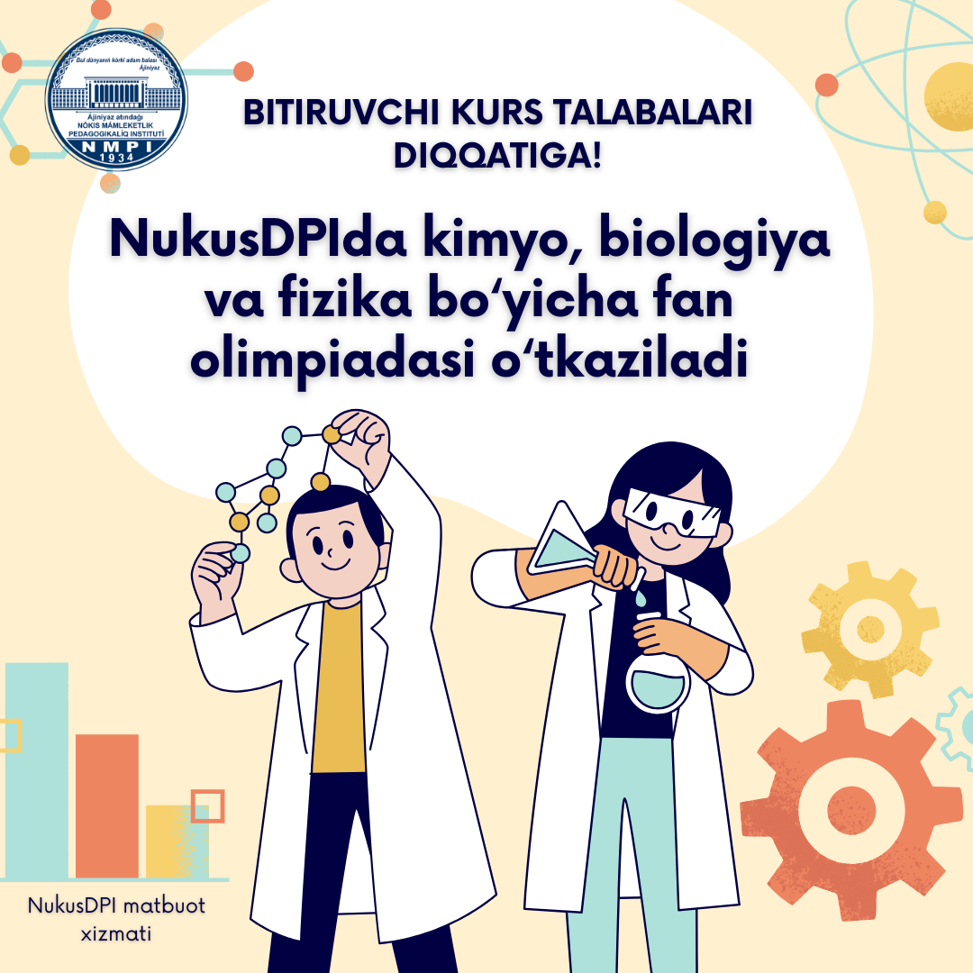 Bitiruvchi kurs talabalari diqqatiga! NukusDPIda kimyo, biologiya va fizika bo‘yicha fan olimpiadasi o‘tkaziladi