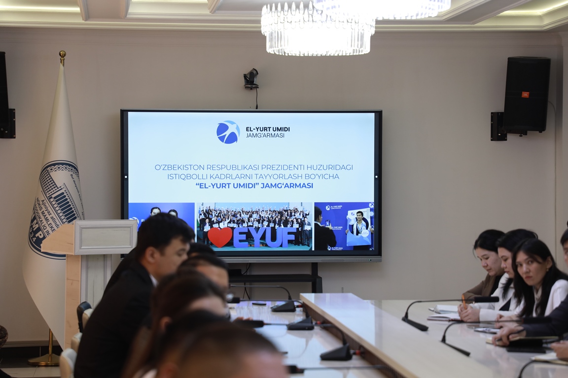 Bugun, 24-mart kuni Ajiniyoz nomidagi Nukus davlat pedagogika institutida xalqaro taʼlim dasturlarini ommalashtirish, yoshlarni global akademik hamjamiyatga jalb etish va Oʻzbekistonning inson kapitalini mustahkamlashga qaratilgan keng koʻlamli taʼlim marafoni – “El-yurt umidi” jamg‘armasi kunlari doirasida uchrashuv bo‘lib o‘tdi.