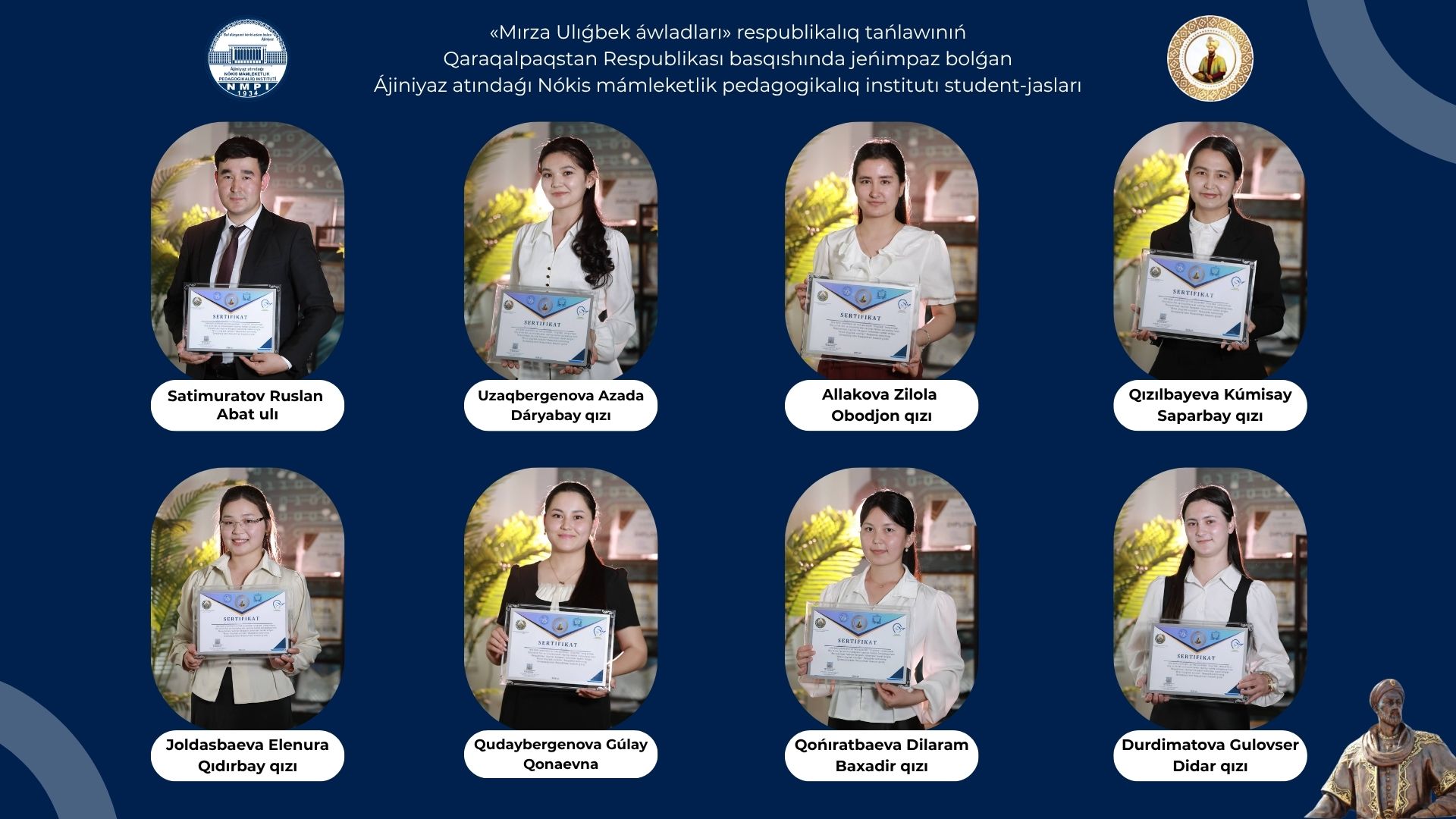 Dilaram Qoniratbayeva – Tabiiy fanlar fakultetining 2-bosqich talabasi;
