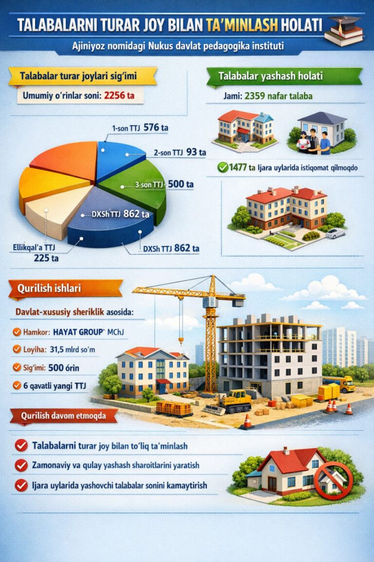 Talabalarni turar joy bilan ta’minlash ishlarini takomillashtirish borasida amalga oshirilayotgan ishlar