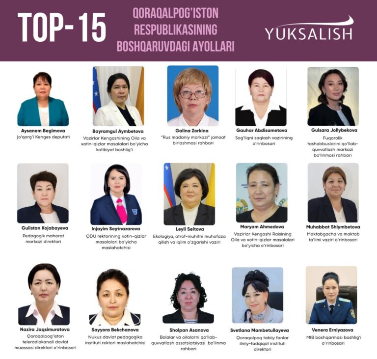NukusDPI rektorining maslahatchisi Sayyora Bekchanova “TOP-15” rahbar ayollar reytingida