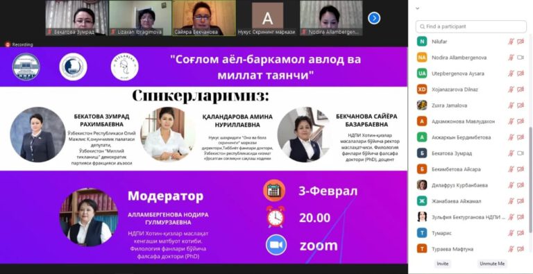 “Sog‘lom ayol – barkamol avlod tarbiyachisi” mavzusida onlayn suhbat tashkil etildi