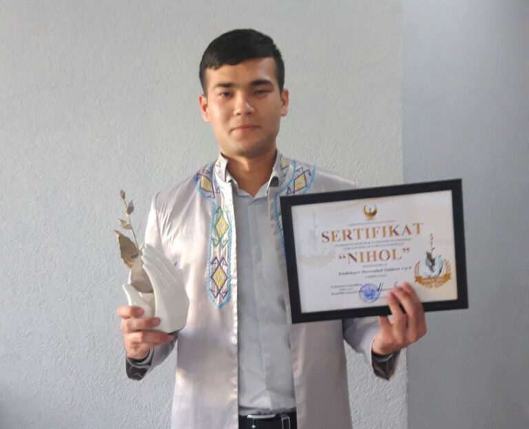 Xushxabar! Nukus davlat pedagogika instituti talabasi Davronbek Yendirbayev «Nihol» davlat mukofoti sohibi boʻldi