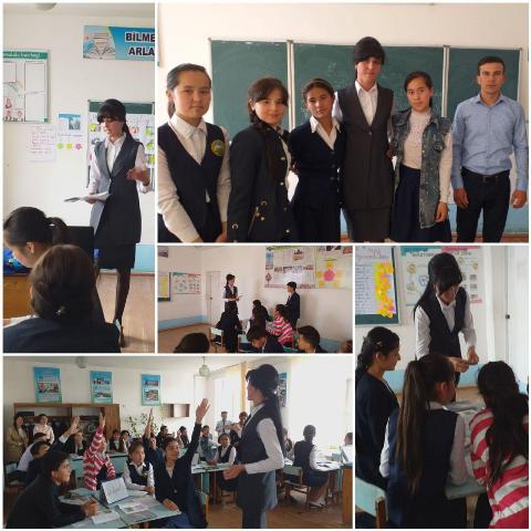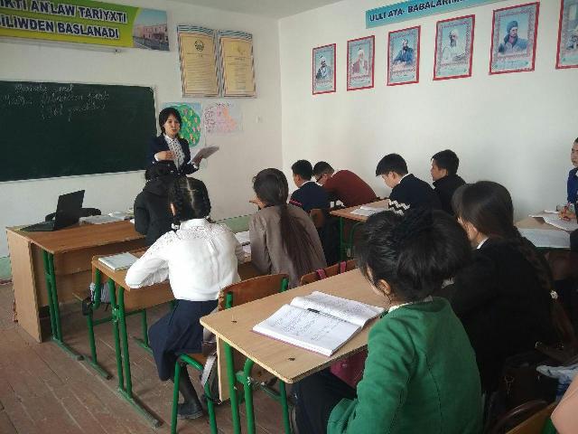 Amaliyotchilar Nukus shahridagi 38-maktabda «Taqlid so‘zlar» mazvusida ochiq dars tashkil etdi